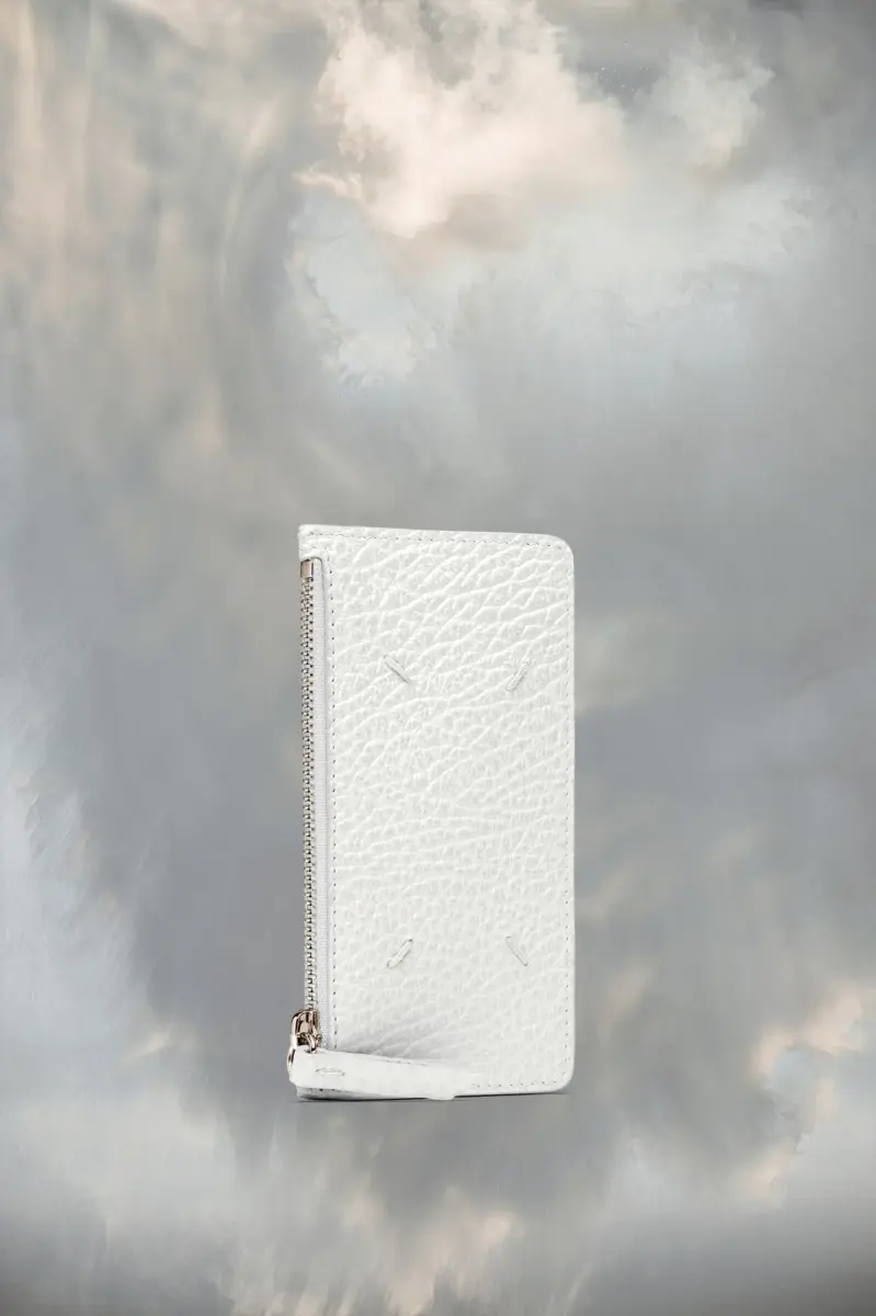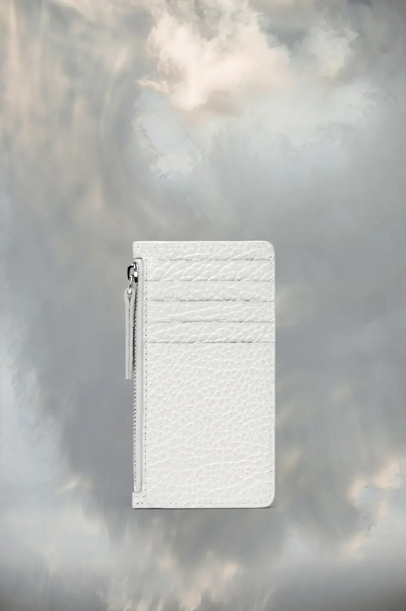 Crafted from embossed grainy leather, the cardholder wallet has a zipped section for coins and five card holders. The numeric logo appears inside. Maison Margiela’s signature, the four stitches, appear at the back; the opposite of a label.