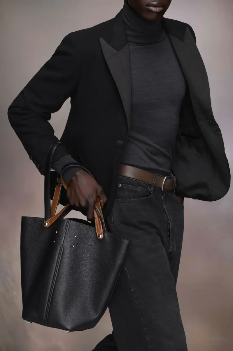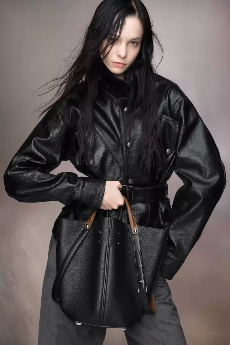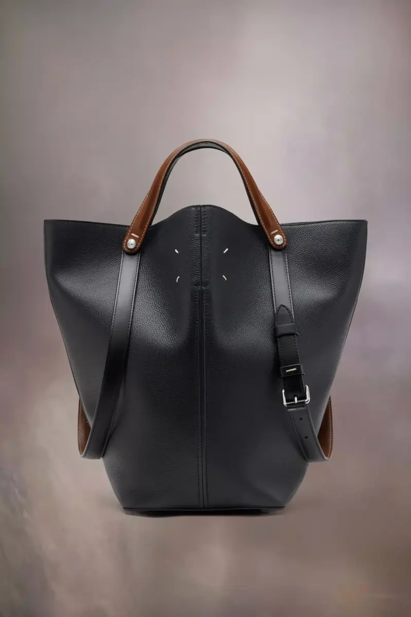 The Maison launches the Dress-age handbag for SS25, crafted from soft pebbled calfskin. With an equestrian spin, the medium handbag features classic leatherwork and refined lines, combining unconscious glamour with gestural design. It follows a trapezoid shape with contrast dual-wear strap detail. The studded base allows the bag to stand, and the inner is adorned with the logo. Maison Margiela’s signature, the four stitches, appear at the back; the opposite of a label.