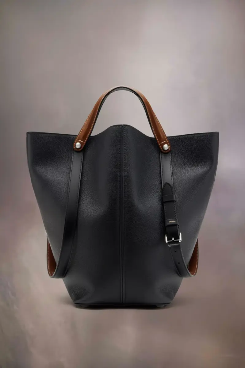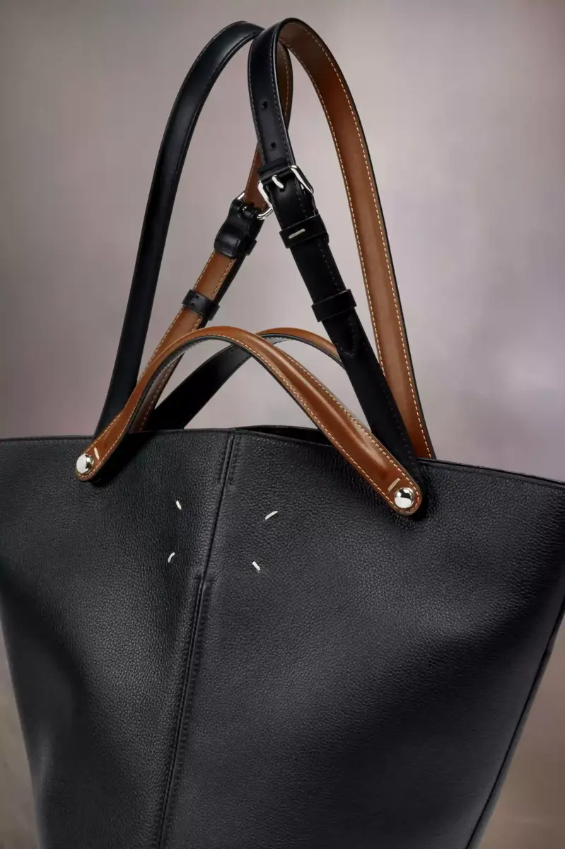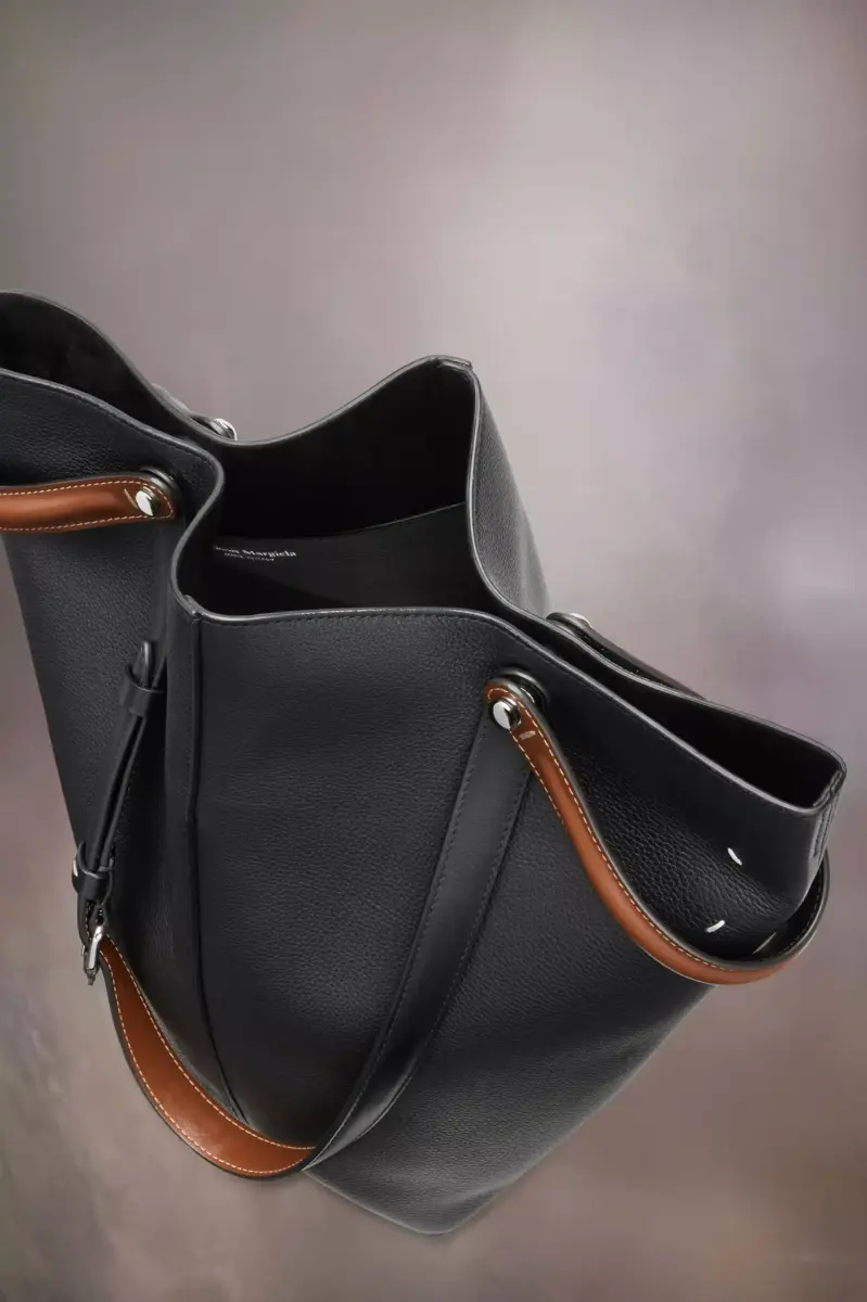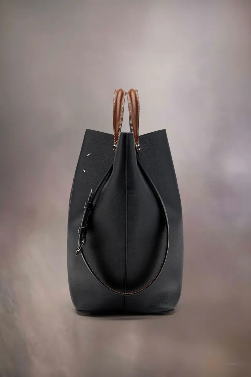 The Maison launches the Dress-age handbag for SS25, crafted from soft pebbled calfskin. With an equestrian spin, the medium handbag features classic leatherwork and refined lines, combining unconscious glamour with gestural design. It follows a trapezoid shape with contrast dual-wear strap detail. The studded base allows the bag to stand, and the inner is adorned with the logo. Maison Margiela’s signature, the four stitches, appear at the back; the opposite of a label.